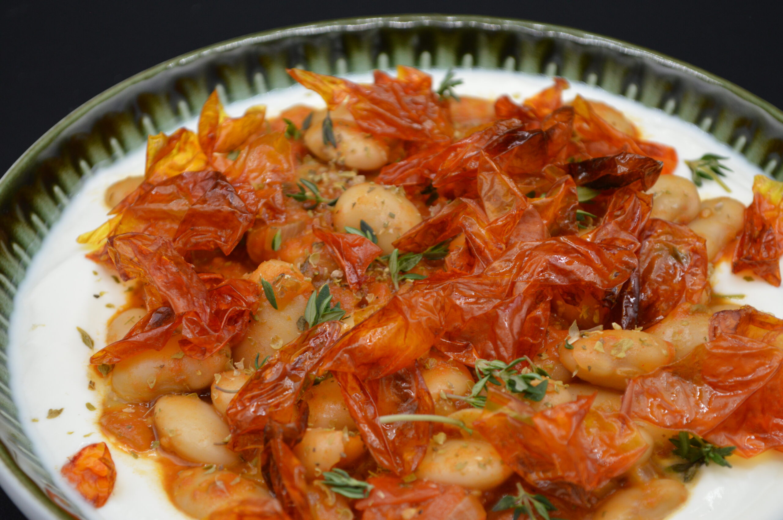 200gr de tomates cerises, 80 gr de haricot blancs, yaourt grec