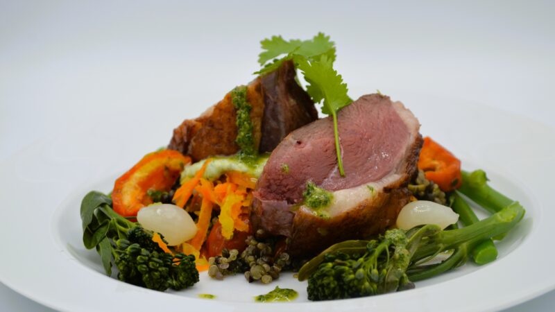 Tendre filet de canard, lentilles printanières et crème aux herbes fraîches